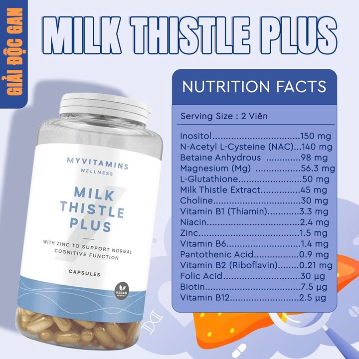 Myvitamins Milk Thistle Plus là sản phẩm bổ sung dinh dưỡng được thiết kế đặc biệt để hỗ trợ chức năng gan và thúc đẩy sức khỏe tổng thể. Với công thức độc đáo chứa các thành phần tự nhiên và các vitamin, khoáng chất thiết yếu, sản phẩm này giúp bảo vệ gan, tăng cường quá trình giải độc và cải thiện các chức năng gan.