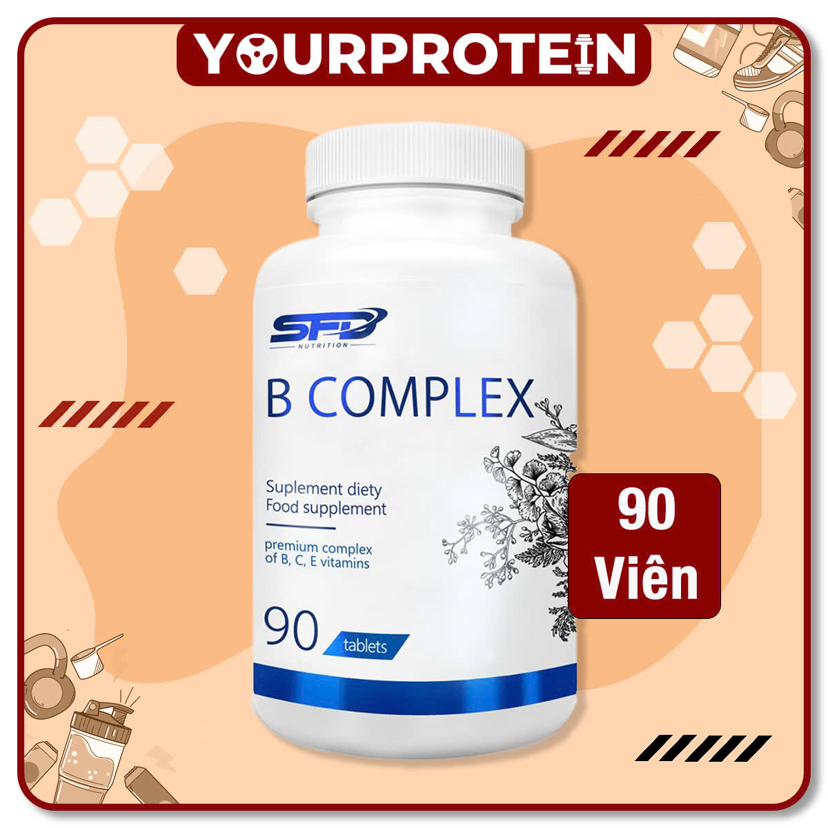 Bạn cảm thấy cơ thể hay mệt mỏi, thiếu sức sống hoặc thường xuyên bị áp lực công việc bủa vây? SFD B Complex chính là “chìa khóa” giúp bạn tái tạo năng lượng từ bên trong. Đến từ thương hiệu SFD Nutrition nổi tiếng tại Ba Lan, sản phẩm cung cấp đầy đủ các nhóm Vitamin B thiết yếu cùng sự bổ sung đặc biệt của Vitamin C và E.
